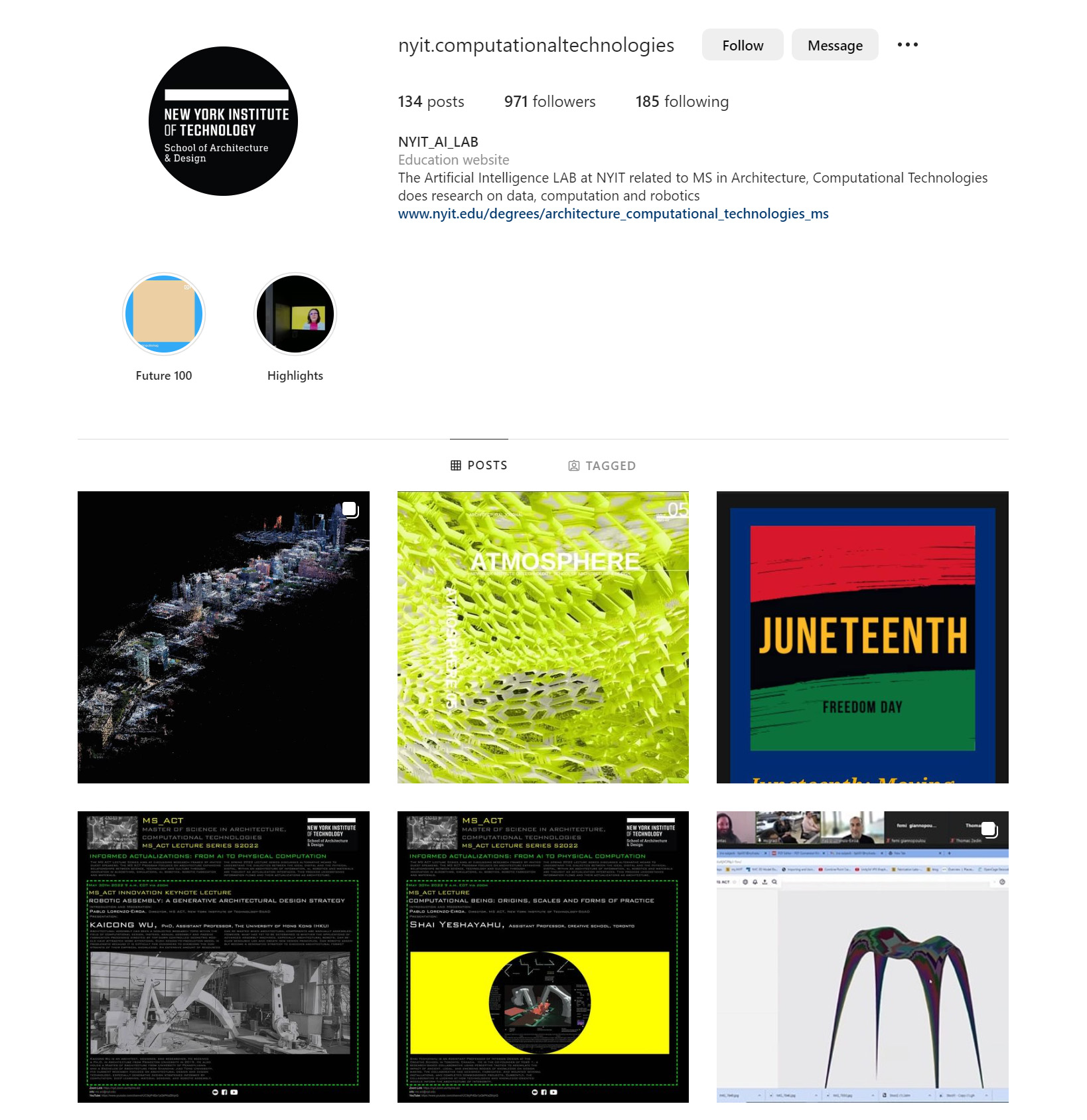 New York Institute of Technology School of Architecture and Design Participated of Digital Futures-Inclusive Futures Workshop, Lectures and Exhibitions events supported by Dean Maria Perbellini and organized by Tom Verebes and including workshops participations tutored by Marcella Del Signore, Christian Pongratz and Pablo Lorenzo-Eiroa.