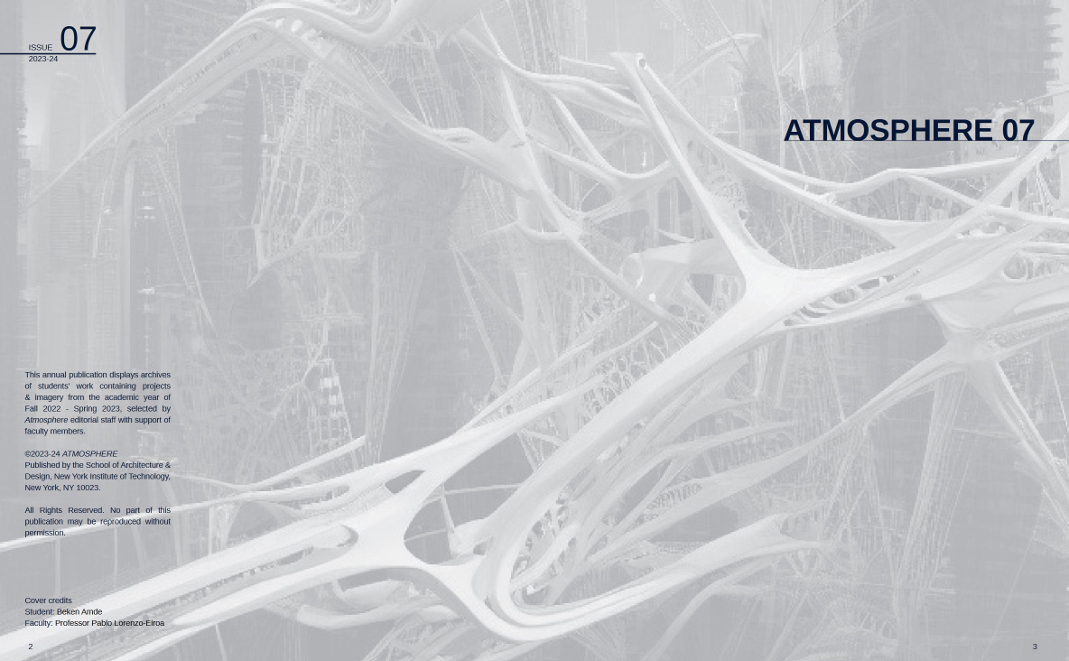 Prof. Pablo Lorenzo-Eiroa's NYIT SoAD MS ACT Graduate Research Studio featured in the cover of Atmosphere 07 Spring 2024.