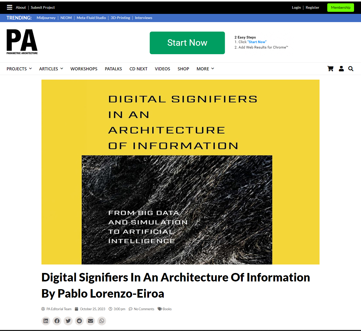 2023-07 Book review featured in ArchDaily "Digital Signifiers in an Architecture of Information: From Big Data and Simulation to Artificial Intelligence" Pablo Lorenzo-Eiroa, Routledge, London, 2023
