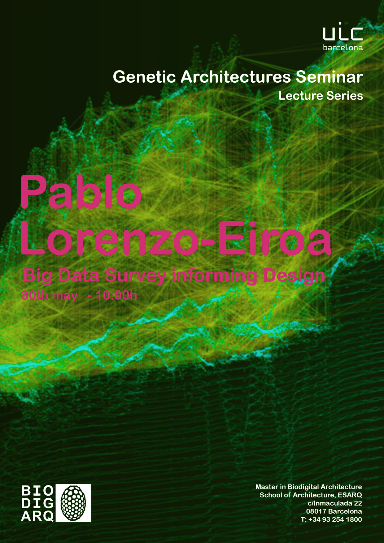 2017-05-30 / 06-07 Pablo Lorenzo-Eiroa to lecture at UIC, Barcelona to deliver lecture on digital architecture based on measurement and Big Data gathering in design. Biodigital Master Program, Director Alberto Estevez. Carrer de la Inmaculada 22, 08017, Barcelona, Spain